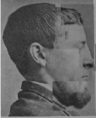 | Verwendetes Bildmaterial aus: Lehrbuch der Identifikation von Verbrechern, Angeklagten oder Verhafteten, von Verunglückten, Selbstmördern etc. Das anthropometische Signalement von Alphons Bertillon. ALBUM. Autorisierte deutsche Ausgabe von Dr. v. Surry, Professor der gerichtlichen Medizin an der Universität Basel. Bern und Leipzig, Verlag von A. Siebert, 1895. |